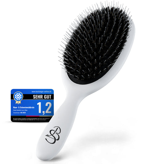 Extensions Bürste für Echthaar&Eigenhaar Bianca Sauchella Secret Shine Wildschweinborsten & Keratin Stifte Haarbürste ohne Ziepen Anti Frizz schonend für Tape In Bonding & Clip In Extensions